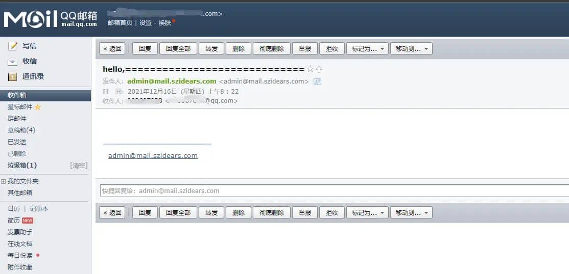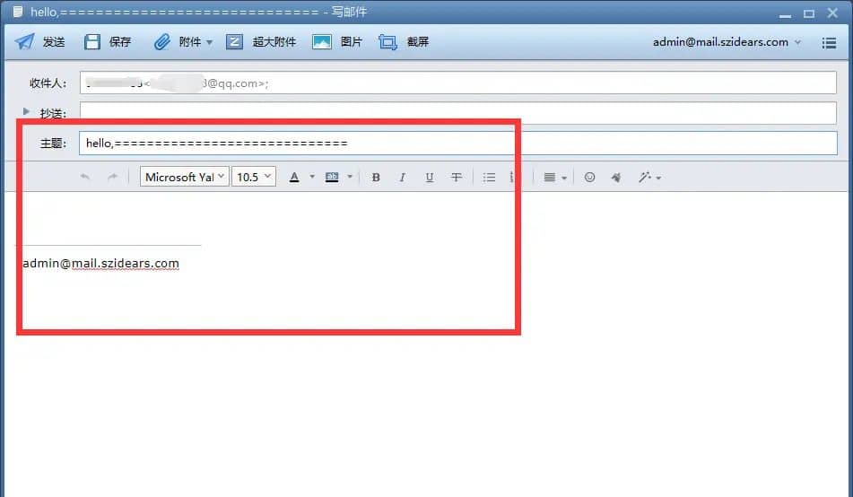 可以看到,收到的正是我们从QQ邮箱发来的邮件。
