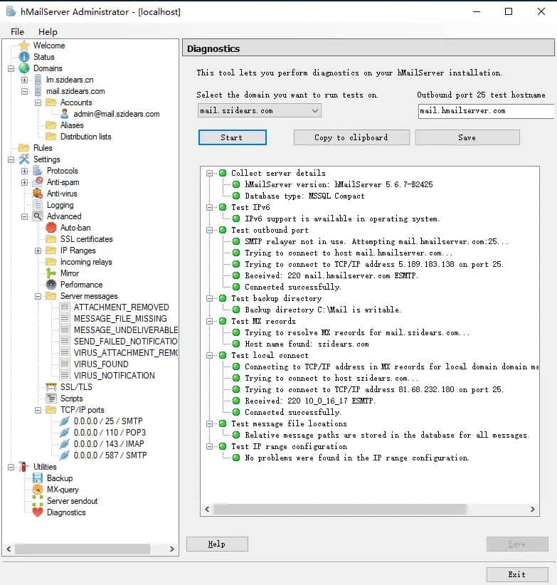 网络有很多的开源邮件服务系统,各种参差不齐或者参考资料配置不全,本文尝试hMailServer的搭建,实现基本的邮件收发,至于其他的功能待使用。